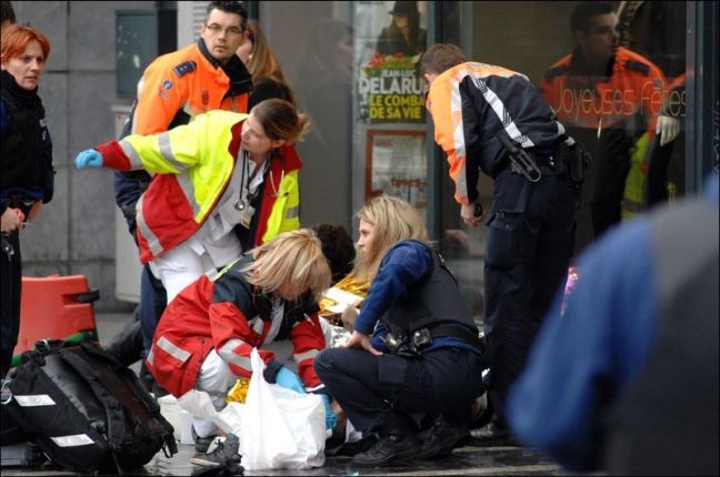 Η περιοχή γύρω από το σημείο της έκρηξης έχει μεταμορφωθεί σε ένα υπαίθριο νοσοκομείο, όπου σωστικά συνεργεία παρέχουν τις πρώτες βοήθειες στους τραυματισμένους.