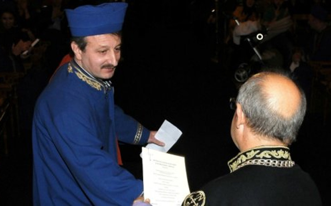 Κουρεμένος, χωρίς την αγαπημένη χαίτη και φορώντας τήβεννο παρέλαβε το πτυχίο του.