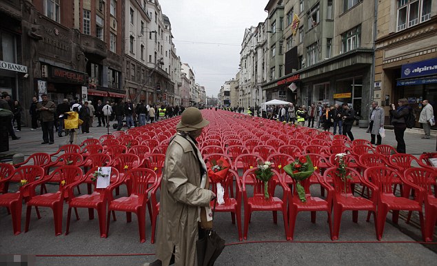 Ανατριχίλα προκαλούν οι φωτογραφίες από την κεντρική λεωφόρο της βοσνιακής πρωτεύουσας. Εκατοντάδες καρέκλες είναι μικρότερες από τις άλλες αντιπροσωπεύοντας τον αριθμό των παιδιών που χάθηκαν στις 20ετείς συγκρούσεις στην πρώην Γιουγκοσλαβία.