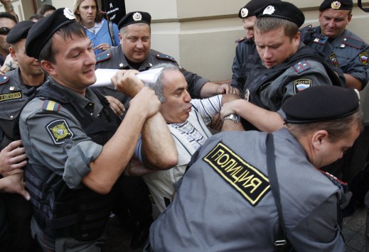 Ο Κασπάροφ συνελήφθη την Παρασκευή στη Μόσχα στη διάρκεια μιας διαδήλωσης υπέρ του πανκ φεμινιστικού συγκροτήματος Pussy Riot μετά την καταδίκη, την ίδια ημέρα, τριών μελών του σε φυλάκιση δύο ετών επειδή τραγούδησαν σε καθεδρικό ναό μια "πανκ προσευχή" κατά του Βλαντίμιρ Πούτιν.