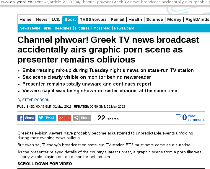 Μέχρι τα ξένα ΜΜΕ έφτασε το πορνό που έπαιζε κατά τη διάρκεια του δελτίου ειδήσεων της ΕΤ3, με τη βρετανική Daily Mail να κάνει ένα αφιέρωμα στο επίμαχο γεγονός με διόλου